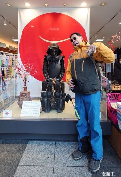 一旁有紀念品店, 大家躲進去吹暖氣, 順便上廁所. 裡面賣的毛豆口味銅鑼燒, 聽說不怎麼好吃. 這兒有伊達政宗騎馬英姿圖案的襪子和衣服, 乍看很像 Ralph Lauren 的 logo, 只是高爾夫球桿變成伊達政宗頭上的彎月, 呵呵!