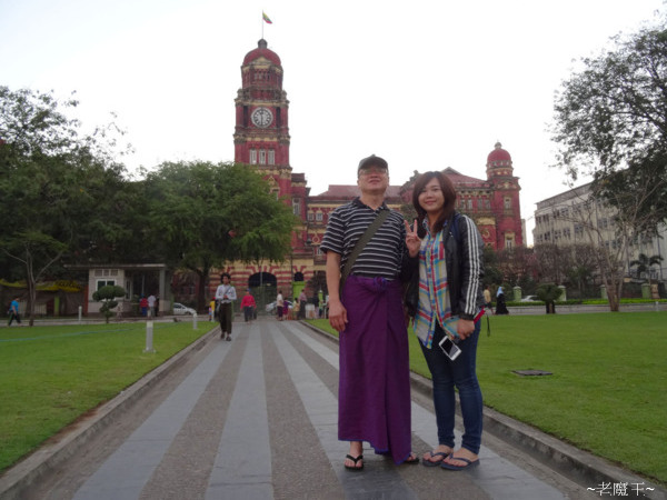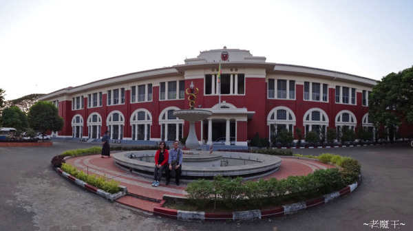公園的西北方, 就是 Sule Pagoda; 正北方是仰光市政廳; 正西方有一座很美的英式建築, 很像我們的總統府, 但從窗內看進去, 似乎已經有點兒傾頹. 後來查資料, 才知道原來是緬甸的高等法院!
