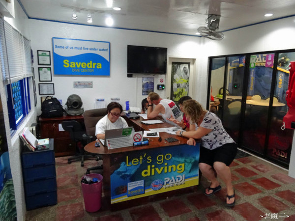 而渡假村和潛水店竟然是分開的營業單位, 則是我第一次遇到. 所以我們先到渡假村分好房間並放下行李後, 才去潛水店填寫表格和租借裝備.