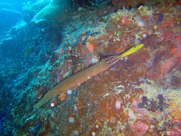 剛拍完這隻櫻花蝦, Lily 突然碳棒一揮, 要我看過去, 剛好一隻管口魚從我腳下游過去.