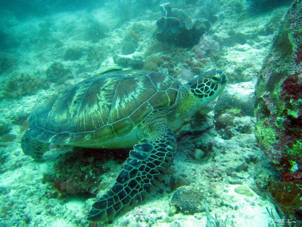 接著連續看到兩隻海龜, 據後來 Lily 說, 這裡主要是綠蠵龜, 偶爾才會看到玳瑁.