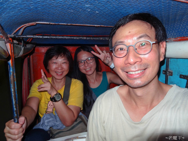 於是, 我們三人擠進小小的三輪摩托車, 顛顛倒倒地在崎嶇的路上飛馳. 駛出一段路後, 才發現前面有好幾輛三輪摩托車在等著載客. 厚~ 早知道就多走 15 公尺出來再議價!