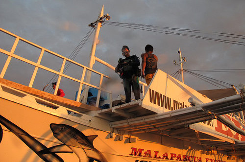 上船後, 休息大約一小時等減壓; 接著螃蟹船來到燈塔附近, 大家著裝, 準備下水.