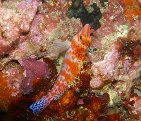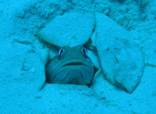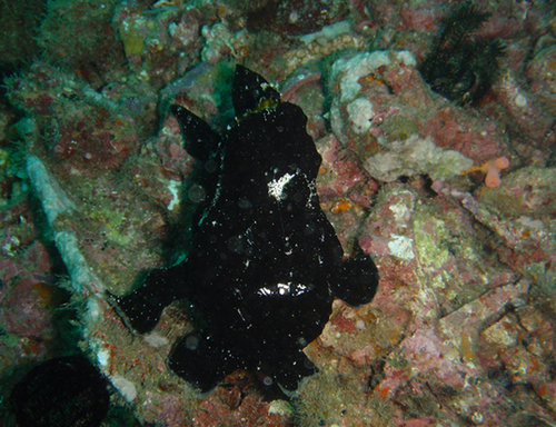 這個潛點的水質稍微濁了點, 但能見度還是不錯. 除了常見的珊瑚和熱帶魚之外, 我們看到了俗稱娃娃魚的躄魚, frogfish.