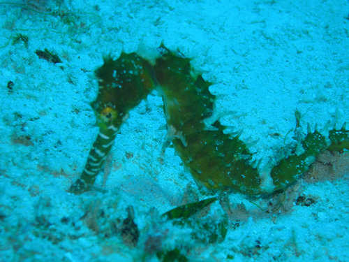 最驚喜的, 是連續看到三隻不同種類的海馬, 其中一隻還挺個大肚子呢. 可惜我覺得好冷, 實在沒心情拍照, 而且正好相機也沒電了, 所以用海洋精靈拍的照片來撐版面!