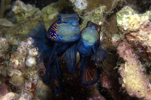 麒麟魚非常鮮豔亮麗, 雄魚比較大隻, 側鰭擺動時, 像是兩片舒緩晃動的扇子. 傍晚是他們的求偶時刻, 雄魚舞動著身體來吸引雌魚. 兩隻魚如果看對眼了, 就會緊緊貼在一起, 相偎相依, 逐漸上升.