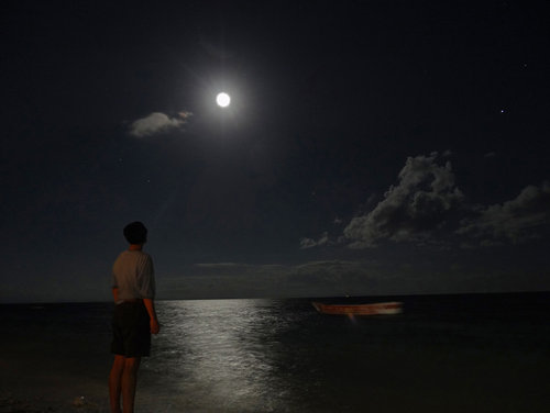 餐後, 我獨自到海邊散步, 就著月光, 欣賞這無邊的大海. 感覺似乎有一股寧靜的力量, 拉著我到這兒來冥想, 於是, 我拍下了這一張在 facebook 上被同學戲稱為 "老人與海" 的照片!