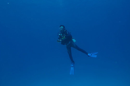 你真想學潛水的話, 我可以介紹海洋精靈給你, 她很細心又有耐心.
