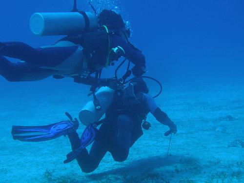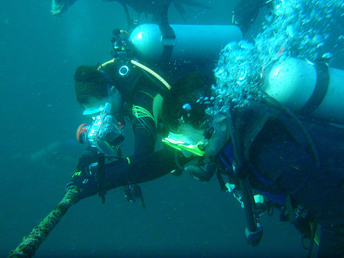此時稍微有流, 因此 Paul 要大家抓著錨繩固定身體, 再隨著減壓程序逐漸上升.