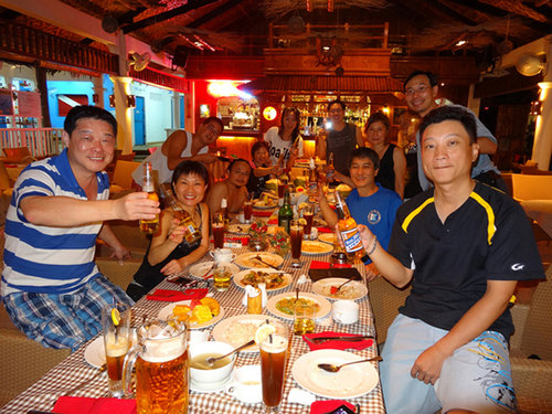 乘船回到渡假村, 大夥兒沖洗結束, 圍坐一桌大快朵頤, 並快樂地討論麒麟魚的逗人模樣. 海洋精靈說她潛水這麼久, 這還是第一次親眼看到麒麟魚呢!