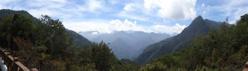 過了這一大段陡坡後, 終於登上位於 2.6 公里處的觀景台. 這兒是雪霸國家公園觀霧遊憩區裡, 看雪山聖稜線的最佳地點; 可惜遠方雲霧已濃, 最鮮明的大小霸尖山竟然都看不到!