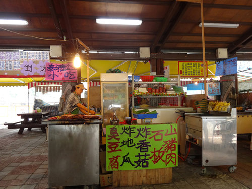 到了清泉, 挑了家小吃店, 簡單地吃飯麵類的食物. 很有趣的是, 大家不約而同地, 都不想點他們推薦的烤山豬肉和烤斑鳩肉, 只另外點了一道 "炒人蔘菜" 來吃, 還滿好吃的.