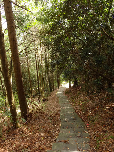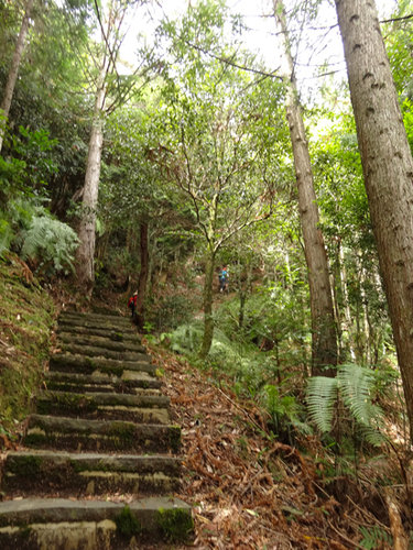 過了 1.3 公里後, 開始有階梯, 而且, 就這麼一路 30 - 45 度的陡峭階梯上山, 連續 1.2 公里. 這一段果然極有挑戰性, 我本來還覺得榛山步道很無聊咧! 幸好有這一段陡坡, 總共沒有白來, 呵呵!