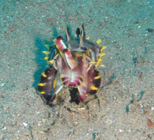 我看海洋精靈很積極地拍個不停, 所以也拍了幾張, 想說上船後再問她答案. 沒想到一上船, 海洋精靈迫不及待地告訴我們 "那是火焰花枝啊! 我潛水這麼多年, 這還是第一次看到!"