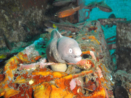 我目前在海裡看過的鰻魚, 那眼神真的都很像壞人耶, 呵呵!