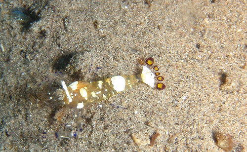當時實在看不懂是啥生物, 覺得很像是 "蝦蛄", 但牠的獵食動作卻又很詭異?