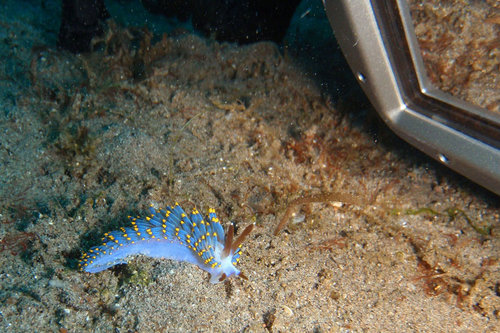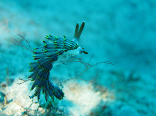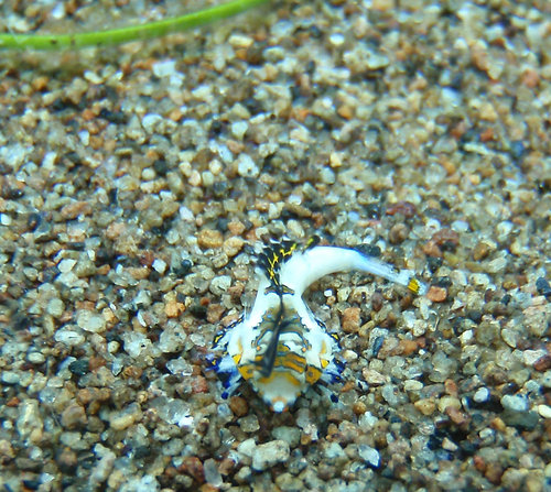 那隻藍色帶黃點的海蛞蝓,如果整個展開來一定很漂亮,