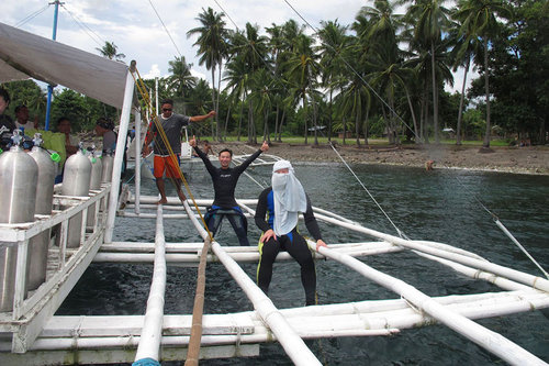 這是我們來到菲律賓的第四天, 早上一起床, 天空不再那麼明媚, 雲層顯然增厚不少. 眾人準備妥當, 分搭兩船, 出海到達各自的潛點. 為了避免水下擁擠, 我們從昨天開始, 就是兩船團員分別在不同潛點下水.