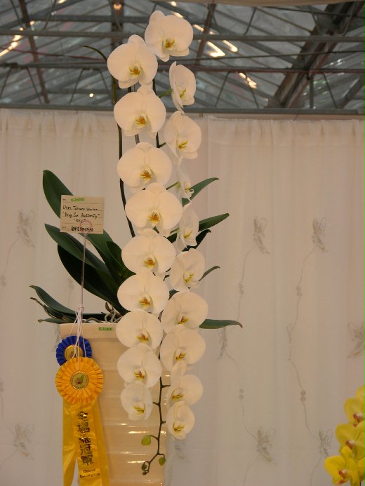 與過去相同的是,一年一度的蘭花賞,今年仍由金車獲得全場第一名(見上圖),這一系列的蝴蝶蘭是在同一株生出十八朵花苞,而朵朵一樣大小,花期長達半年,是金車的代表作。
