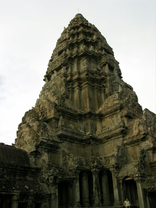 來柬國第四天,進入邏粒省的重點就是走一趟小吳哥城,這裡是世界七大建築奇蹟之一,到這裡爬上中心塔的天堂,是行程的重點,讓人心驚的是陡坡卅度的階梯,似乎得斜著腳往上走,然而下來的路,卻面對著群眾,總有些高處不勝寒的驚心。