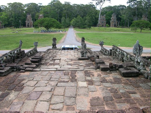 來到大吳哥窟城,最先來到的是鬥象台,昔日王侯在高台下,看象群爭霸,兩側則是臣子與隨從,由鬥象台的廣闊,可以想像昔日的人聲鼎沸。