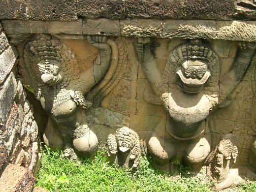 吳哥窟城外,則是知名的乳海翻騰雕塑作品,只是時光的砂漏,謀殺了這些作品的恆久,殘缺或許是另一種美吧。