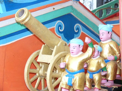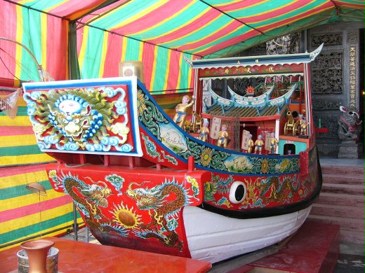 隨著台海多次的洪泛成災,頂山村與海越離越遠,王船無法每年到海上巡狩,頂山村建別興建王船殿,請頂級師父重修王船,在船上模擬出船堅利砲,同時每一個軍伕異常威猛。