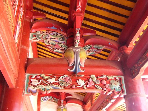 劉家古厝的正堂的,高懸咸年間的兵部待郎兼福建巡撫王得祿賜予劉家的「文魁」匾額,兩旁的建築斗栱、藻井,都可以看出木工的用心之處。