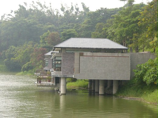 江南度假村在尖山埤自然景觀的庇佑下,湖光山色十分怡人。本來台糖只有在這裡建小木屋,後來增設六棟湖濱景觀套房(下),現在又建大型會館,提供南台灣各項大型會議使用,一般民眾也可以訂房居住。