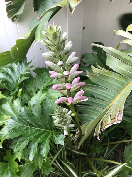 我家的 Bear Breach 已抽花苞,馬上要開花了,此花高高大大,花紫紫白白,一層又一層的,長得十分帥氣,鄰里間不常見,她有些年開花,有些年又不見踪影,幾十年過去了,我们從忙碌的工作中退休,才發現,不是每年都來的,她是誰?为什么有時來,有時不來?我開始追踪…