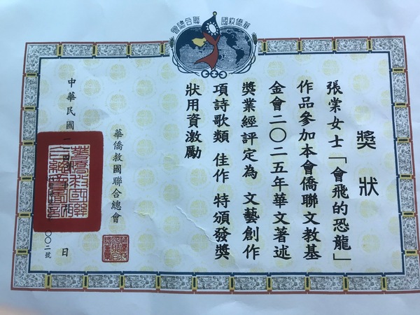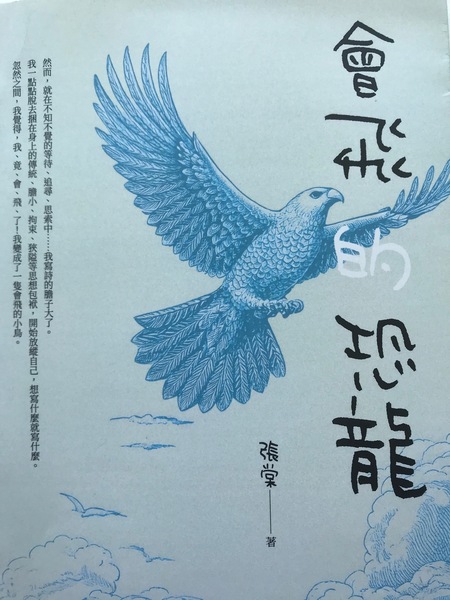 出新書囉!會飛的恐龍 詩序 (張棠) 我有一個願望,想把我一生的詩稿合成一本詩集。尤其當我在編家譜時,獲悉我是詩人家族「錢塘吳氏」的第十四代外孫女。 也許就是詩人家族延綿太久了,寫詩的家風就隨著清朝而...
