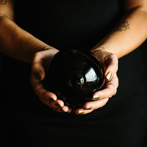 今天要使用黑曜石水晶球。黑曜石非常適合吸引負能量, 溶解它, 並將其轉化為積極的東西。黑曜石也是一種非常具有保護作用的石頭。它是硫化玻璃。但是我們稱之為水晶。我也放一個普通的石英水晶球在這裡, 這是一個螢石水晶, 如果我們在這裡看到奇怪的東西,這螢石水晶將有助於平衡能量。