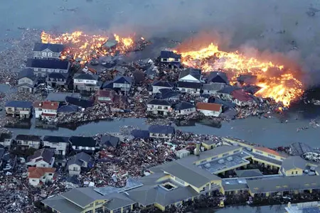 「3月11日下午發生芮氏9.0地震,10公尺高的大海嘯侵襲日本東北延海地區,港口船隻被衝上岸,大量海水更以萬馬奔騰之姿,越過堤防湧上陸地淹沒農田、住宅區,剎那間變成一片汪洋,陸上的汽車也隨著大海浪四處亂流,仙台機場損毀、火災頻傳……」,