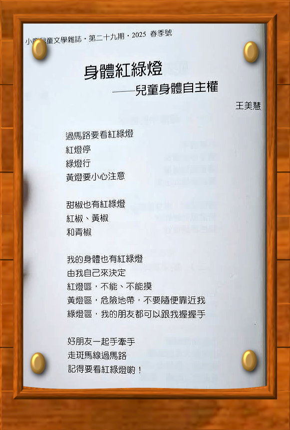 ◎ 【童詩】身體紅綠燈 (刊登於 小鹿兒童文學雜誌)