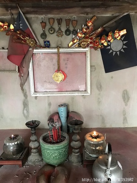 村頭有小廟,祀奉的是民國三十八年內戰的英魂,廟無名,蓋英雄無名。祭台上一度陳列乃忠獻祭的若干勳獎章,經年累月的擺置,後來佚失。曾詢其曰不得而知,並謂「原本係身外之物,何足掛哉」雲淡風輕一語帶過,一時令余刮目相看;嗣失而復得即高懸牌位之上,終年煙火裊裊不絕,伴英魂之光輝祐我黎庶,振高地之靈氣護我村民。