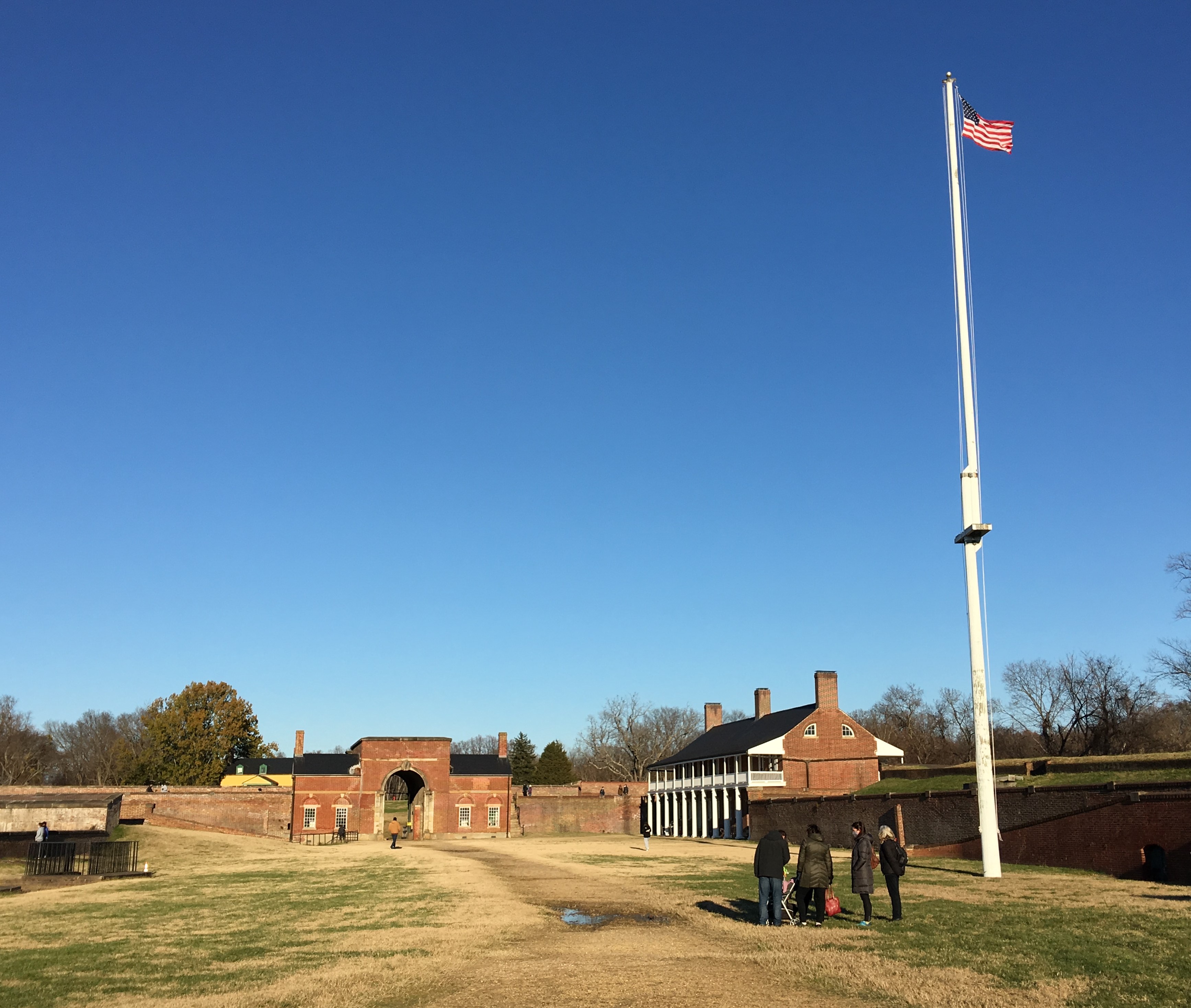 當年美國外患來自海上,大西洋到切薩皮克灣,水面遼闊,無險可守,從迪格斯角進入波托馬克河時,水面驟然縮緊,寬不過百餘公尺,突出部的迪格斯角,扼守著從大西洋進入首都的咽喉,是防衛京畿的戰略要地。華盛頓總統有遠見,無奈建國初期國庫空虛,華盛頓堡1809年建築完成時,只有面對波托馬克河的十二門岸砲。當年美國沒有威力強大的戰艦,僅憑這座簡易的堡壘,1814年,沒能擋得住英國皇家艦隊的進襲,導致首都淪陷。