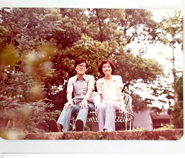 那是1975年一個溫馨的夏天,在台北外雙溪公園與女友初次出遊時拍的合照。在那年代,交女朋友都比較保守,往往都會先一群人,或另外一對男女朋友一起出遊,免得尷尬,我們也不例外,這張照片便是一同出遊的同學照的。