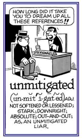 unmitigated adjective / complete, often describing something bad or unsuccessful that has no good or positive points