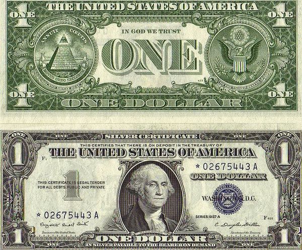 "In God We Trust" first appeared on U.S. coins in 1864 and has appeared on paper currency since 1957. A law passed in a Joint Resolution by the 84th Congress (P.L. 84-140) and approved by President Dwight Eisenhower on July 30, 1956 declared IN GOD WE TRUST must appear on currency. This phrase was first used on paper money in 1957, when it appeared on the one-dollar silver certificate. The first paper currency bearing the phrase entered circulation on October 1, 1957.