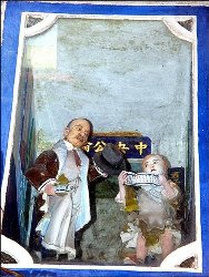 〔自由時報記者劉婉君/佳里報導〕已有82年歷史、全台最古老國父遺像隱身台南縣3級古蹟佳里金唐殿內。剪黏大師何金龍於民國17年,在日本人的眼皮底下,成功偷渡,向國父孫中山致敬,而在現代人眼中,不談政治,更為古蹟建築增添一份趣味。
