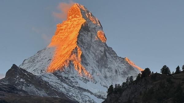 2025年10月7日清晨7點30分,旭日初升,金輝乍現馬特洪峰雪巔;光影如熾紅的熔漿,順著山坡流淌而下,逐漸染遍了迎光的山脊。我將妻的玉照緊緊地揣在懷裏,一起迎接這日照金山的壯麗,心情萬分激動。妳之遺...