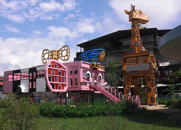 下圖呈覒了療癒心靈的粉紅象溜滑梯和可愛的長頸鹿觀景台。這兩座由報廢公車改造而成的巨型裝置,不僅是藝術品,更是孩子們的遊樂設施。它們代表了創造力、童真與快樂,也體現了資源再生的環保理念。