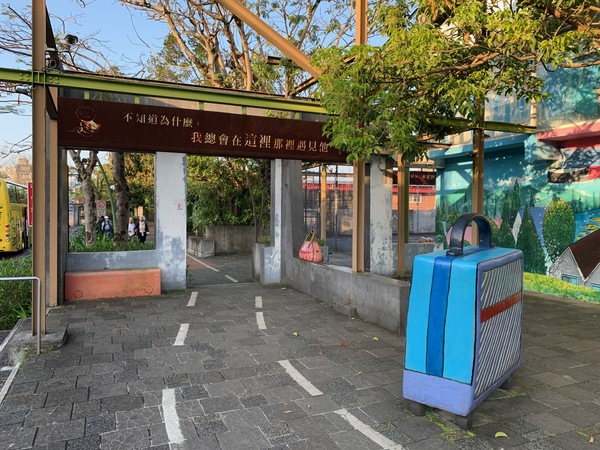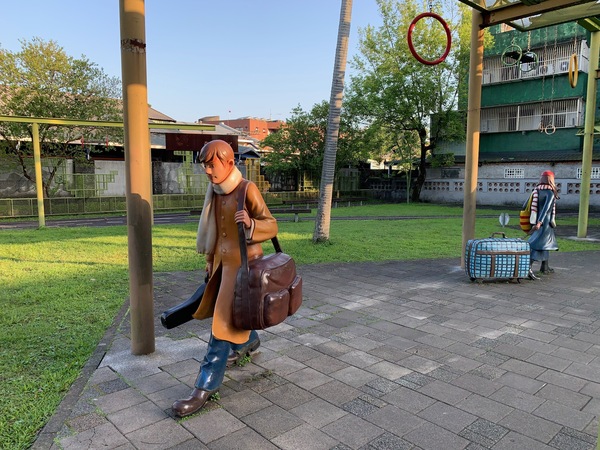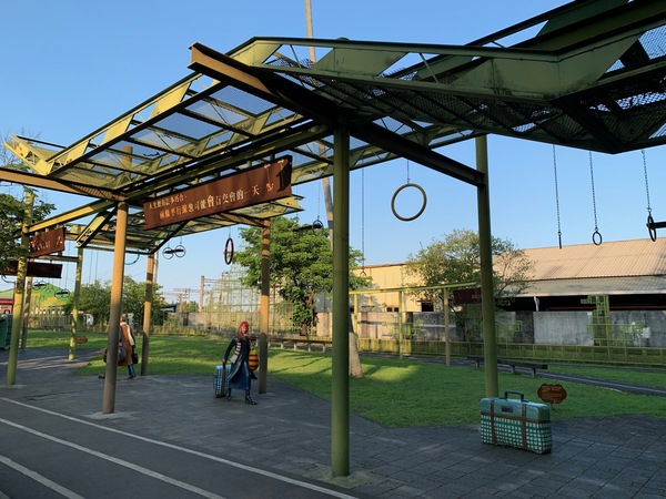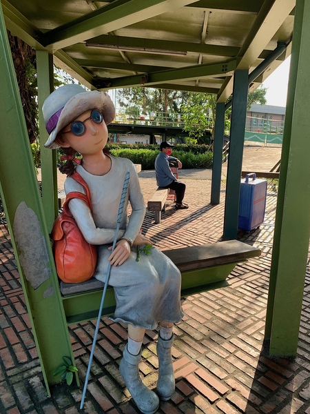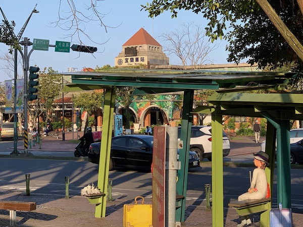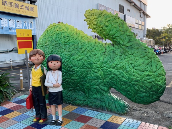 當你看到一對天真無邪的小朋友,在「宜蘭站」站牌前靜靜地等車時,就代表你已經來到幾米公園了。