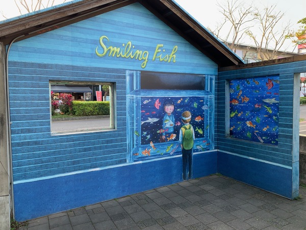 入口處有一位抱著魚缸的中年男子,魚缸裡的魚始終微笑著。《微笑的魚》故事提醒人們要懂得自由與釋放,也要關注生活中那些被忽略的美好與溫柔。
