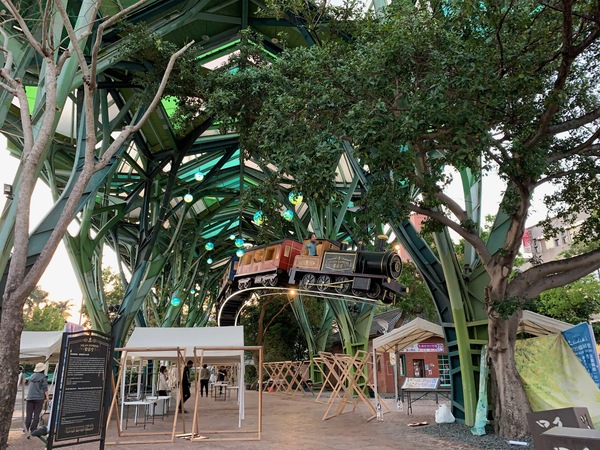 自2014年起,「幾米星空列車」悄然飛入這片森林。以幾米繪本《星空》為靈感,列車化身為夢幻的星空列車,車廂飾以繁星與流星圖案,沿著林間步道緩緩前行。結合自然植栽與周邊公共藝術裝置,營造出一處宛如夢境的城市綠洲,邀人漫步其中,感受童話般的詩意氛圍。