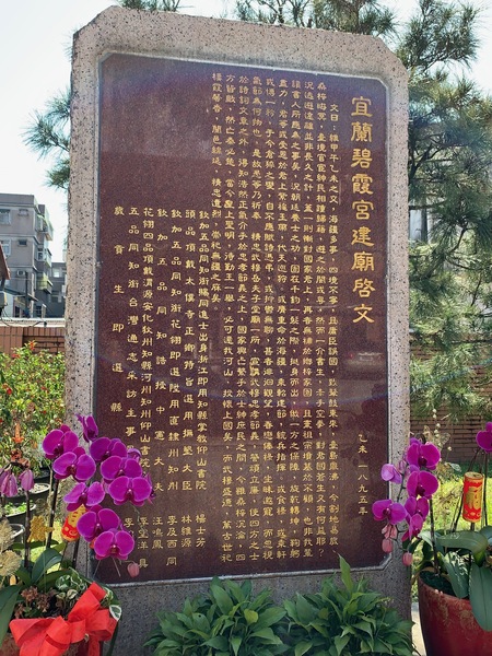 碧霞宮前身可追溯至日治初期。1895年,宜蘭士紳楊士芳、李望洋等人,因不忍見家園受異族統治且社會動盪,便以扶鸞得「宣揚忠孝、感化人心」的神諭為由,籌建廟宇,並於1899年完成主殿。其命名取自「碧血丹心望曉霞」,象徵有志之士保衛山河的決心。