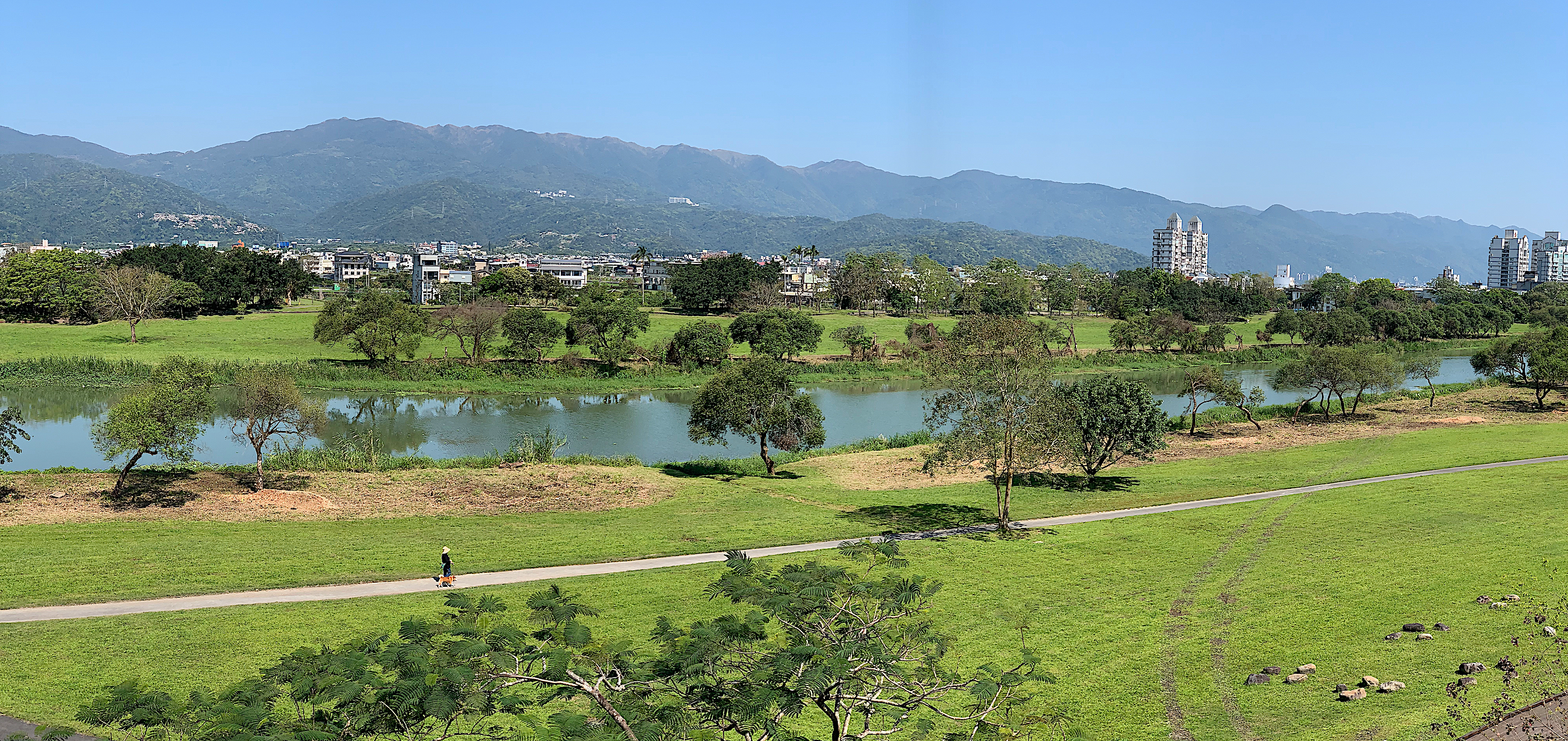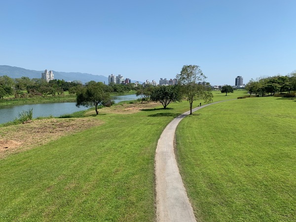 黄昏時,騎自行車到宜蘭河河濱公園運動,騎到汗流夾背,通體舒暢。