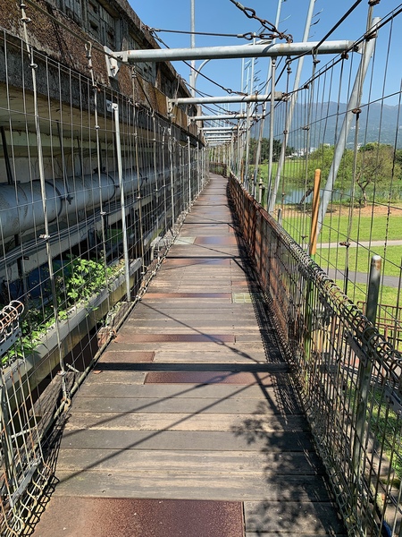 全長約200公尺的橋體,以粗獷的鐵絲網架構築出獨特的工業風貌。設計上順應自然,任憑藤蔓植物攀爬、鋼鐵表面鏽蝕氧化,刻劃出隨時間流轉的痕跡。這座橫跨宜蘭河的棧橋,是一條兼具人行與自行車功能的通道,橋下連接廣闊的河濱公園,成為宜蘭人平日漫步、享受悠閒時光的絕佳地點。