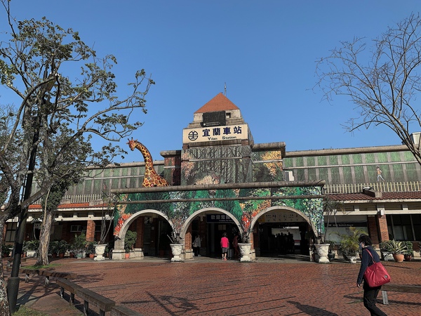 宜蘭車站是日式木造屋頂融合現代設計,外牆與天橋上可見幾米風格的繪畫,充滿童趣。號稱「幾米火車站」。