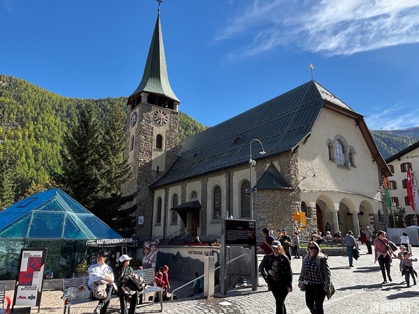 下圖為位於聖莫里修斯教堂一側的馬特洪博物館 (藍色玻璃頂的建築)
